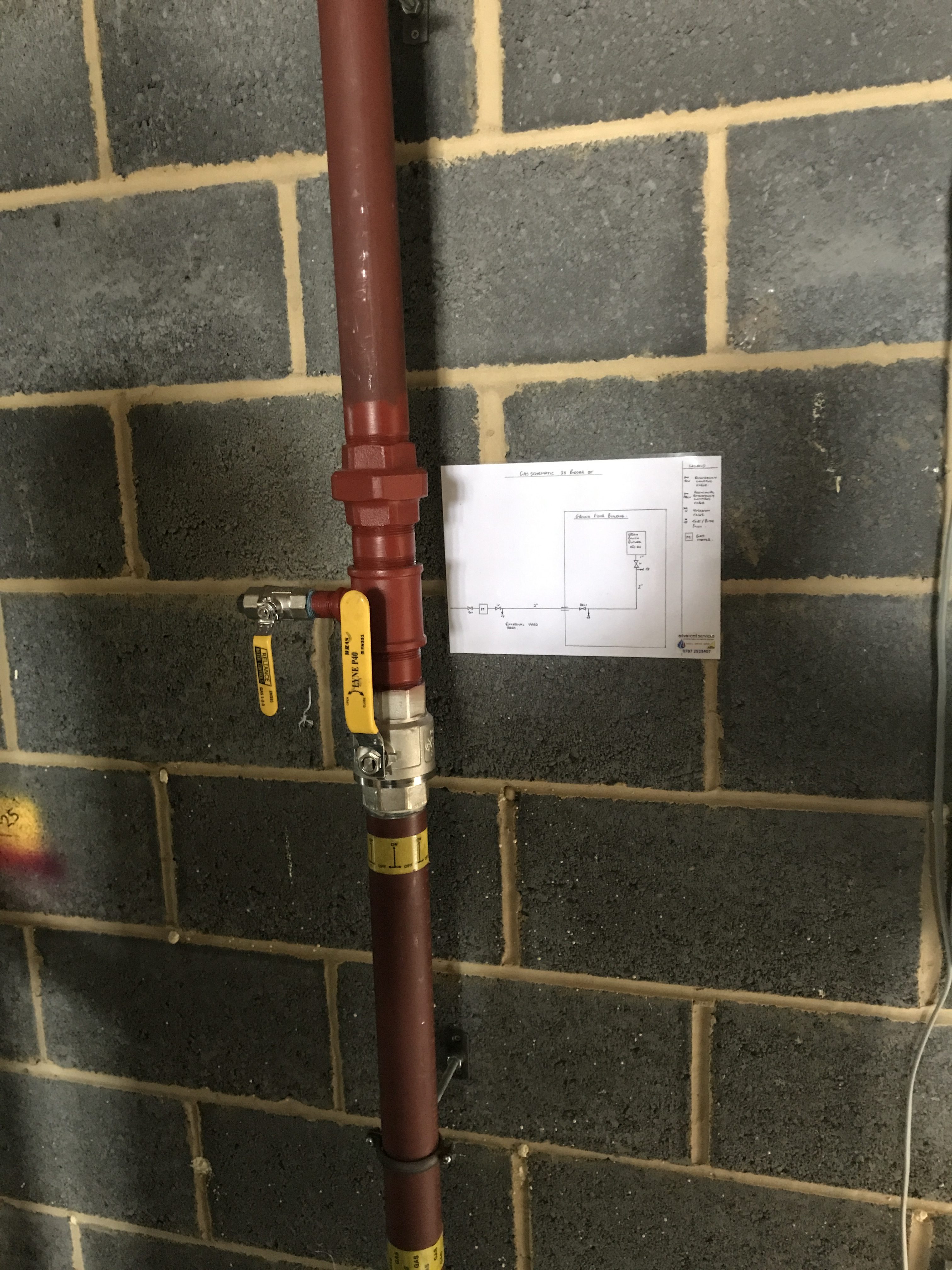 A new 40m run of 2" gas Pipework installed and commissioned to serve a spray booth in an art studio, London.